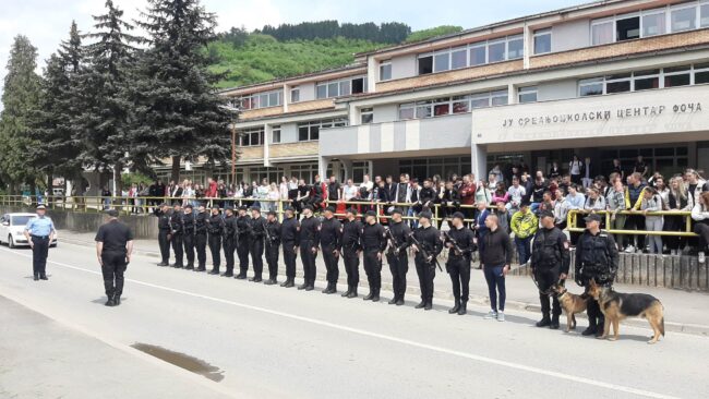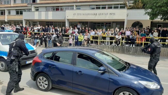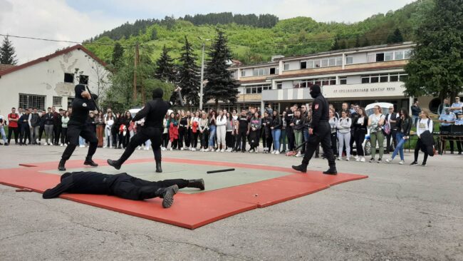 Уз све потребне информације у вези са уписом, ученицима Средњошколког центра на платоу испред школе приказана је тактичко-показна вјежба фочанске Жандармерије, која је судећи по одушевљењу и аплаузима ученика била изузетно успјешна.