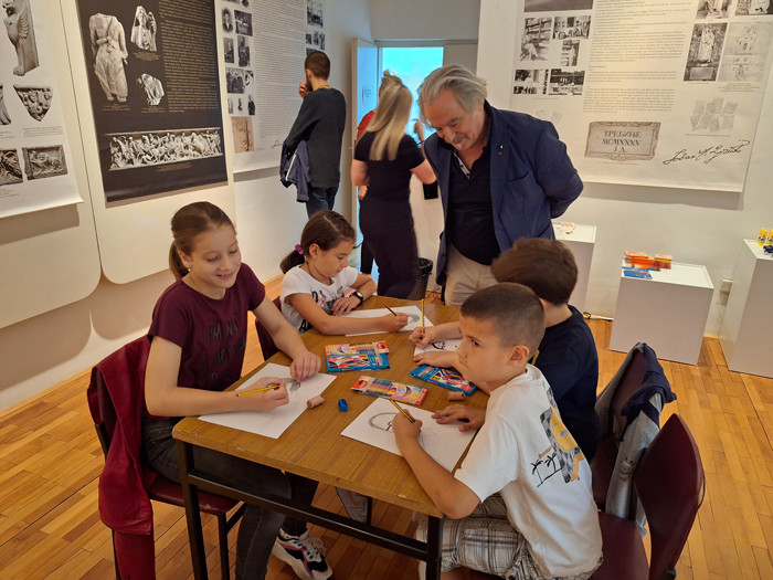 Мотиви поставке о чувеном српском пјеснику, дипломати, колекционару и задужбинару били су инспирација основцима на радионици цртања. Међу њима Ирини Мимић, Јовани Ивановић и Матији Благојевићу, ђацима четвртог разреда.