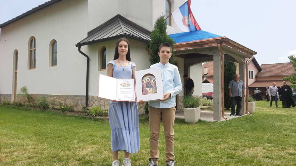 Међу њима, награђени су брат и сестра Јован и Михаела Смрекић из Фоче, који сваке недјеље и празницима помажу свештенику током службе, а са татом Бојаном и мамом Јеленом и у пословима уређења црквеног дворишта.