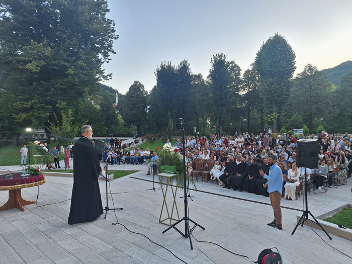 Духовно вече испред Храма Светог Саве организовала је Црквена општина Фоча нова.