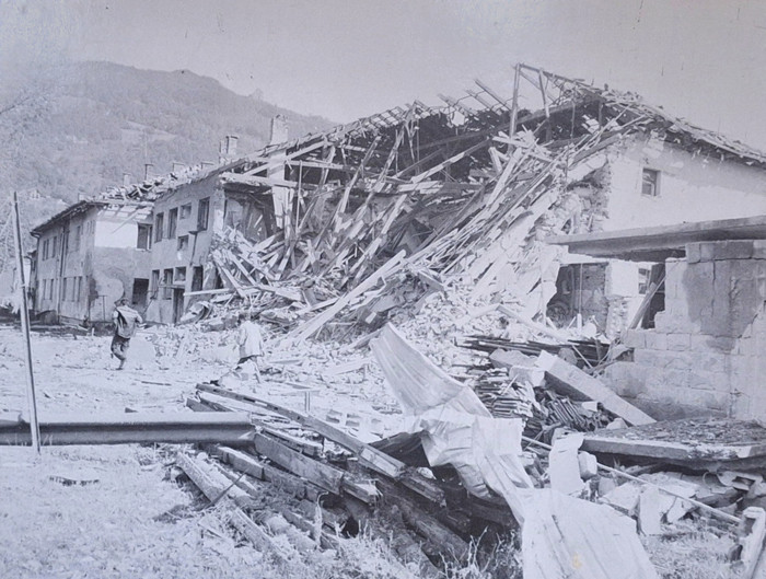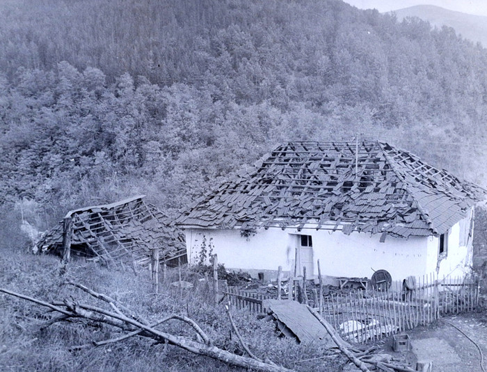 Уништена приватна кућа и помоћни објекти у селу Закмур, фото: Музеј „Стара Херцеговина“, Спомен-соба