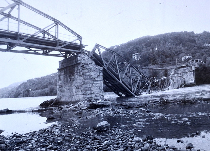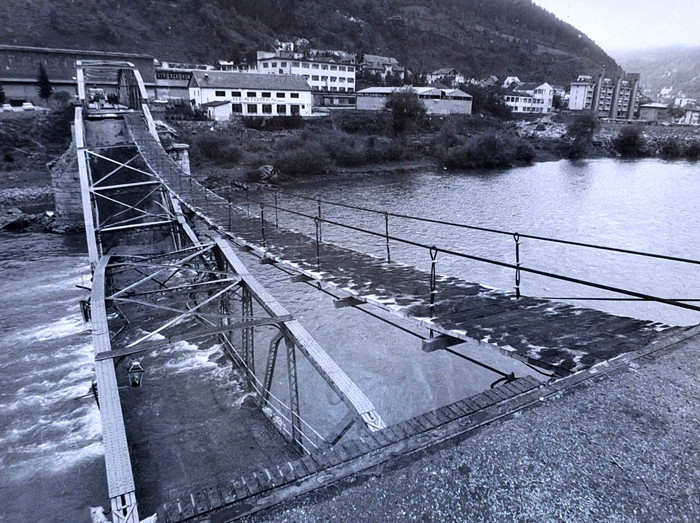 Посљедице бомбардовања - Дрина премоштена висећим мостом, фото: Музеј „Стара Херцеговина“, Спомен-соба