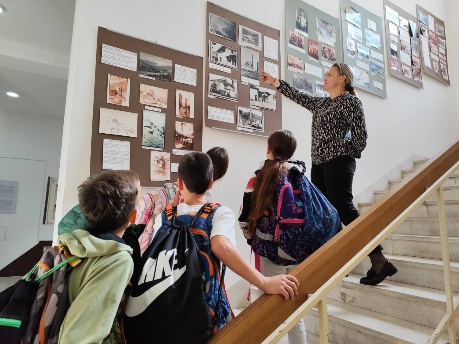 Виши музејски педагог Бранка Драгичевић показује дјеци поставку "Фоча у прошлости"