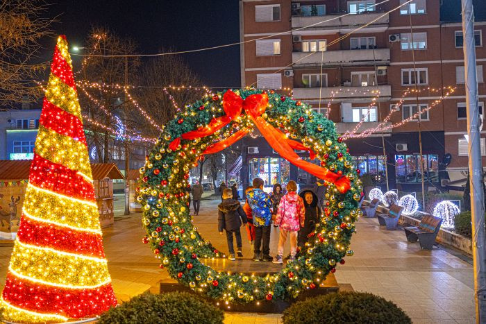 Посебну чар даје и масивни богато украшен вијенац испред споменика краљу Петру Првом Карађорђевићу, који је идеално мјесто за празничну фото-успомену.