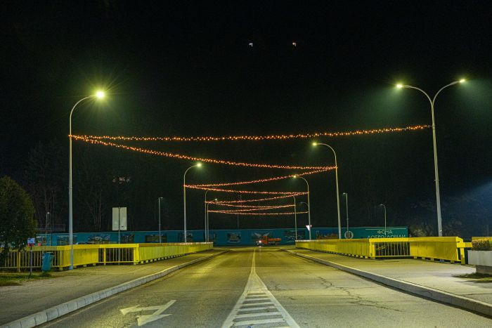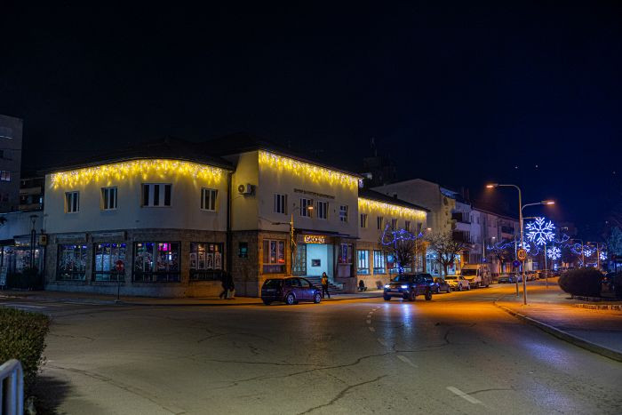 Долазак празника наговјештава и новина од ове године - низ новогодишњих лампица изнад централног дијела Трга краља Петра и преко Јужног моста слободе на улазу у Фочу.