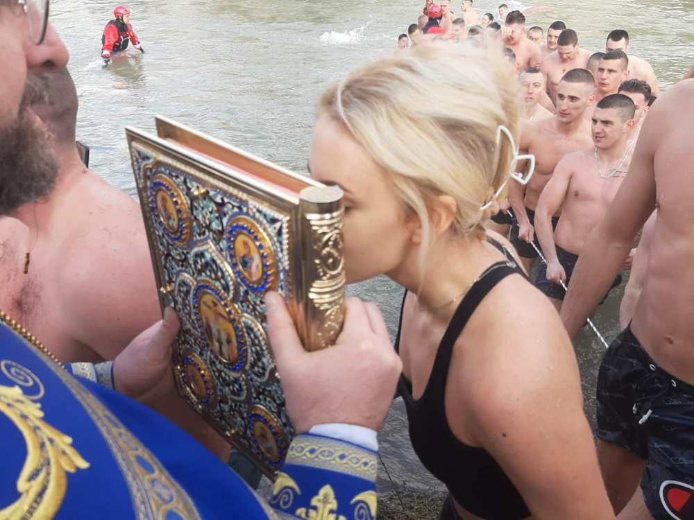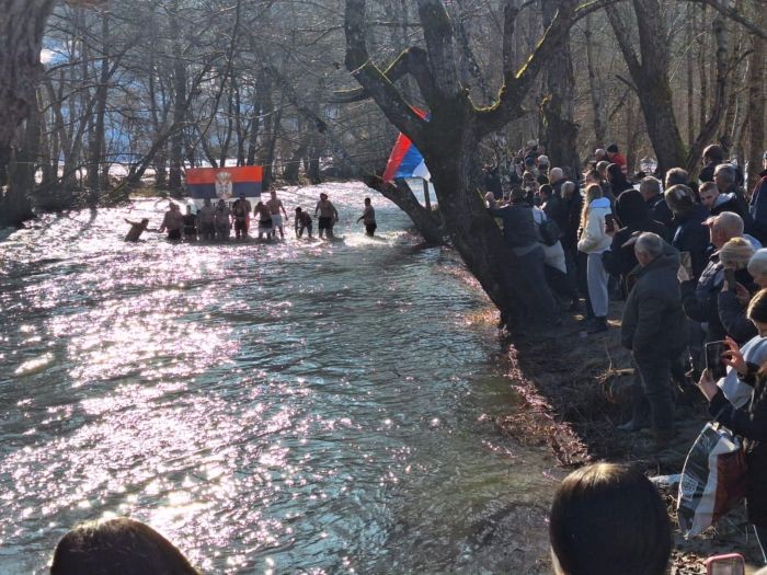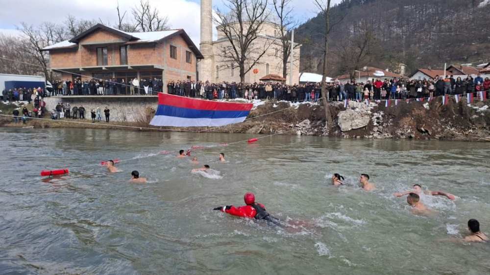 Претходно је у Храму Светог Саве, уз литургију, обављено велико водоосвећење богојављенске водице, да би потом услиједила литија до пливалишта.