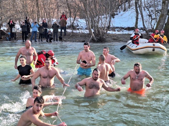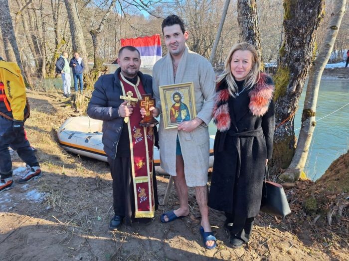 Тринаестогодишњи Стефан Лучић, ученик седмог разреда Основне школе “Свети Сава” из Фоче, први је допливао до Часног крста у Богојављенском пливању на ријеци Ћехотини.