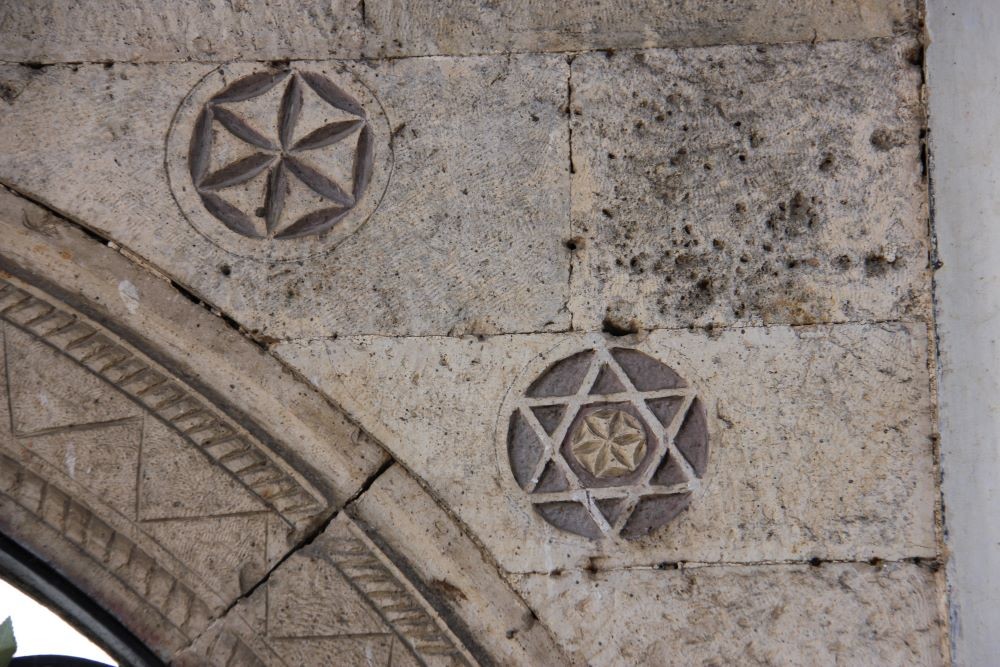На Храму Светог Николе у Фочи, шестолисна розета често је унутар шестокраке звијезде описане кругом.