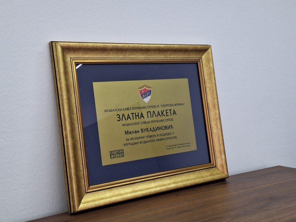 Вукадиновићу је Златна плакета додијељена за несебичну помоћ и подршку у изградњи фудбалске инфраструктуре.